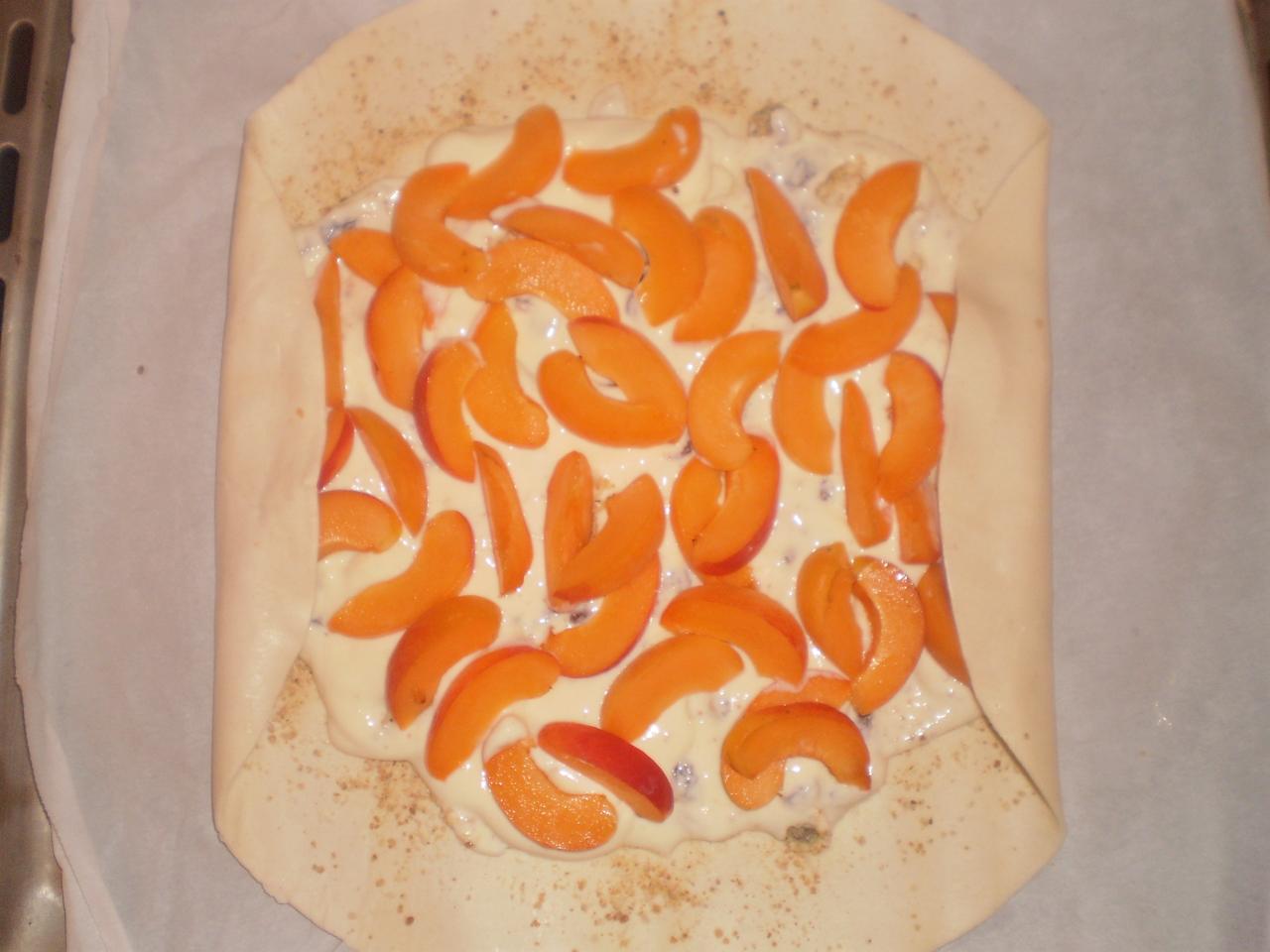 Stendere il composto di ricotta e adagiarvi sopra le fettine di albicocca.