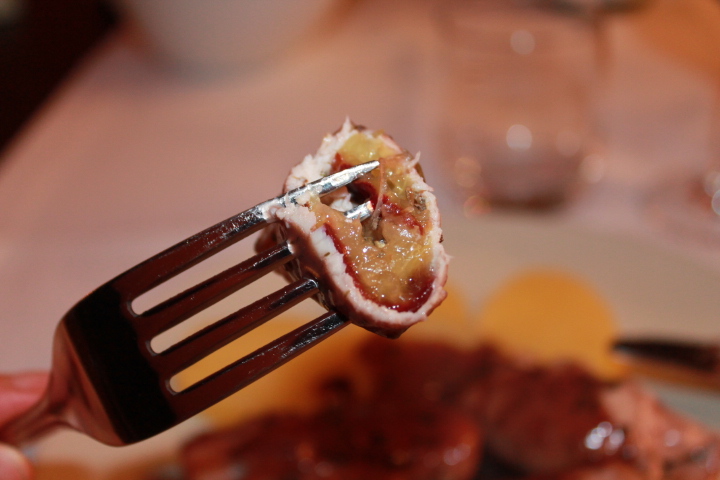 Servire gli involtini insieme alla loro salsa. Io li ho accompagnati con delle semplici patate lesse.