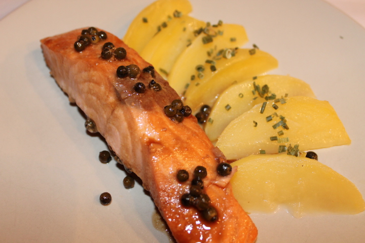 Il salmone al pepe verde è diventato ormai un cavallo di battaglia perché è uno dei pochi piatti che preparo ripetutamente visto che ci piace davvero tanto con il suo sapore bello deciso per essere un piatto di pesce.
