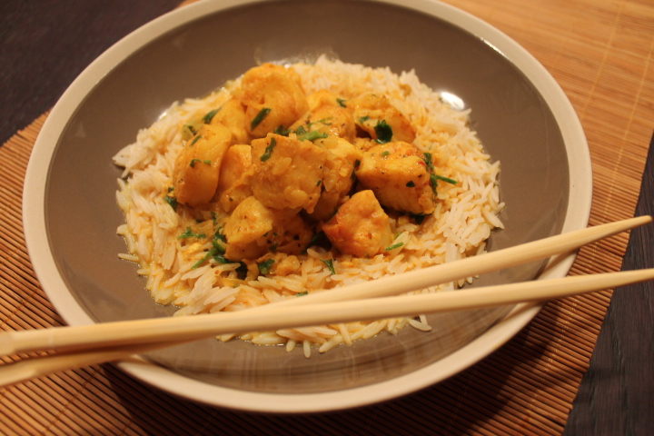 Io lo trovo un’ottima alternativa al più tradizionale pollo al curry (di cui vi ho già lasciato qui la mia versione allo yogurt): deciso nei sapori, ma al tempo stesso delicato e leggero visto che è un piatto di pesce e la salsa è a base di latte.