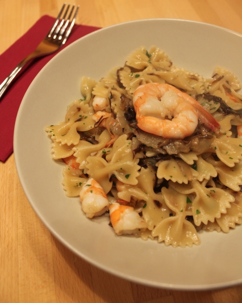 Farfalle con radicchio e mazzancolle