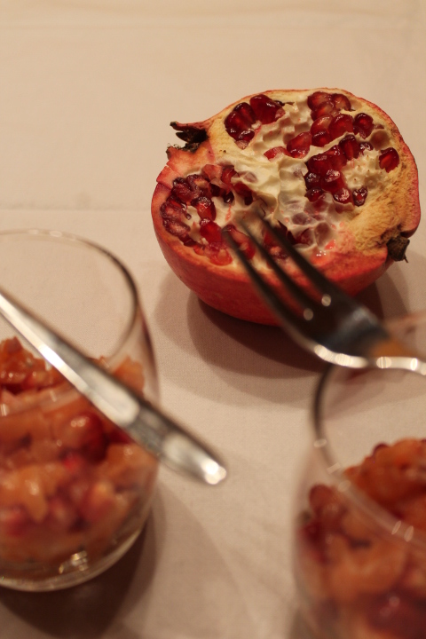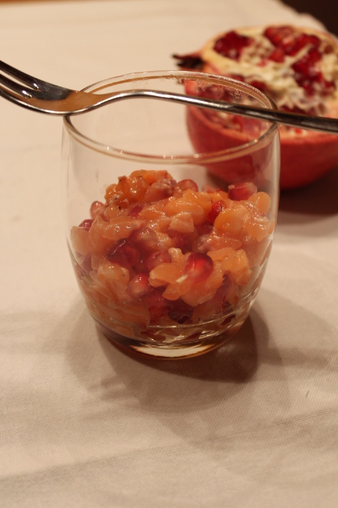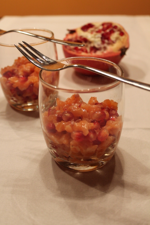 Questa tartare di salmone, poi, la propongo, insieme al risotto di ieri, come antipastino per le feste. C’è pure la melagrana che porta fortuna!