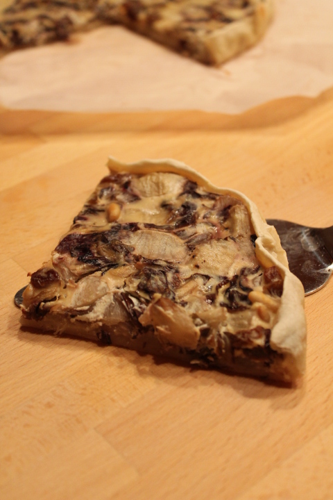 Iniziamo con il chiarire che non sono a dieta. Perché, altrimenti, chi mi conosce si potrebbe allarmare. O scandalizzare. Dipende dal livello di intimità. ;) Comunque, l’altra sera avevo deciso che mi andava la torta salata con radicchio, uvetta e pinoli. Peccato che mi fossi scordata di acquistare la solita base di sfoglia. Sia mai che io rinunci a una mia idea! E così, sfogliando tra le ricette che avevo raccolto qua e là ho ritrovato questa base leggera per torte salate (io la chiamo “leggera” perché detesto la parola “light”! mi sa tanto di chimico…). Visto che gli ingredienti, fortunatamente, ce li avevo tutti (te credo, son due!), mi sono subito messa a impastare. E’ stata la mia prima torta salata fatta totalmente con le mie manine. Che soddisfazione! Il risultato è stato una torta molto leggera (anche nel ripieno) che mangiata la sera tardi ci stava bene. Non che adesso farò tutte le torte salate con questa base (la pasta sfoglia o anche la brisée sono tutta un’altra cosa!), ma mi ha fatto venire in mente che potrebbe essere una base alternativa, più leggera, per tutte quelle quiche o torte salate belle cariche, di cui generalmente se ne mangia una fettina per alleggerire sia la coscienza sia la digestione. O comunque, nella versione con ripieno di verdura, potrebbe sicuramente essere un’ottima soluzione per un pranzo leggero tra una cena di Natale e l’altra o per il giorno dopo le classiche abbuffate in famiglia.