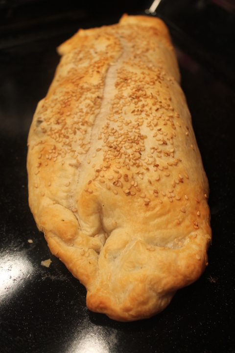 - Avvolgerlo delicatamente lo strudel e sigillare bene le due estremità. Spennellare con poco latte e cospargere, a piacere, con i semi di sesamo.