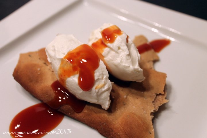Spezzettare la croccantina e servirla insieme a qualche quenelle di formaggio fresco di capra e una bella cucchiaiata di confettura di rosa canina Mariangela Prunotto.