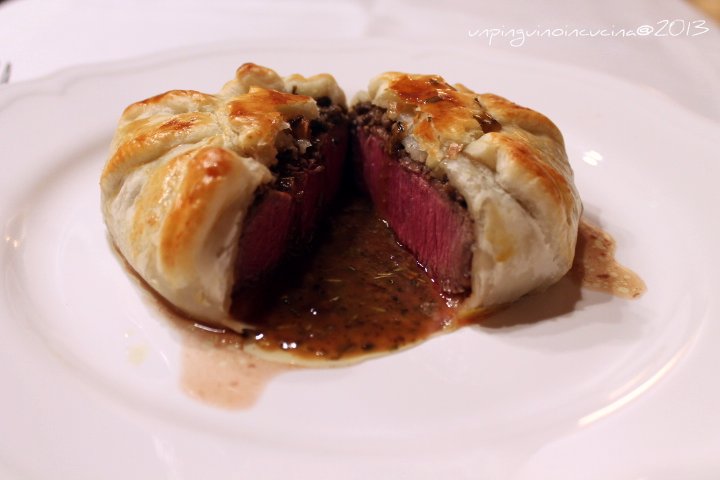 - Servire il filetto tagliato a metà con la riduzione di vino rosso.