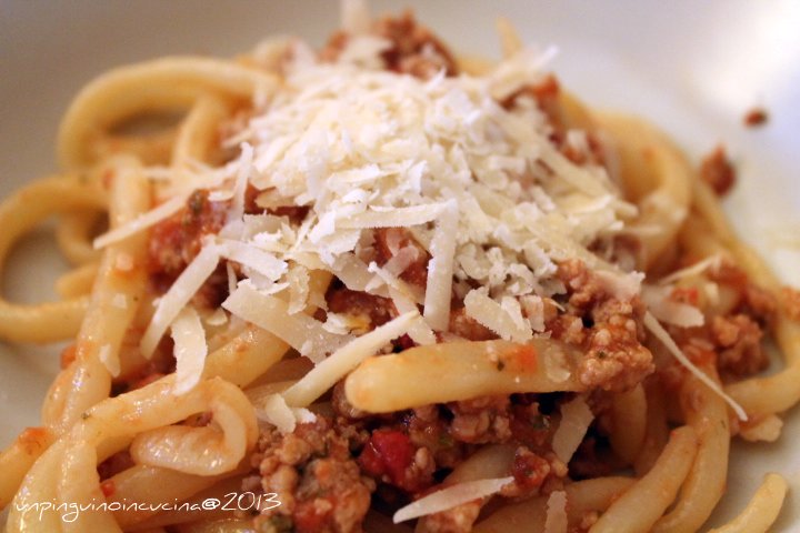 Io, appunto, ho usato il ragù gentilmente offerto dalla Mami e gelosamente custodito in freezer fino al momento opportuno. Una bella manciata di parmigiano grattugiato, et voilà!