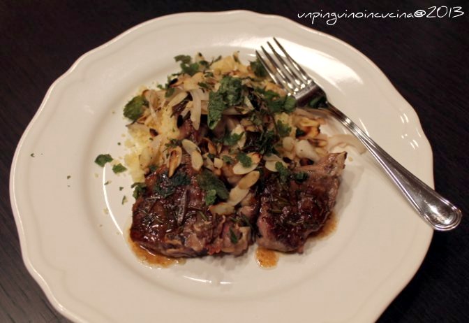Costolette di agnello glassate con couscous, mandorle tostate e menta