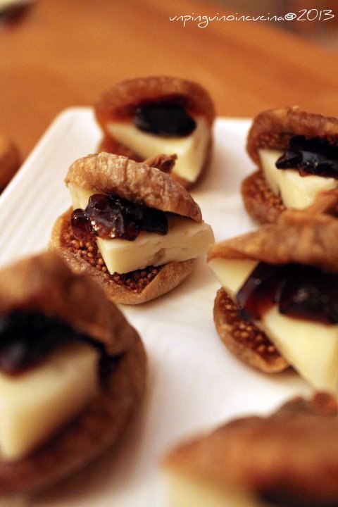 Buona domenica, amici miei! Non so da voi, ma qui a Milano stamattina veniva voglia di infilarsi nuovamente sotto le coperte. Piove, mannaggialamiseriaccia!!! E io che mi ero già immaginata una bella giornata al parco coi bimbi, un gelato per merenda, una passeggiata verso casa… niente, nisba, nada de nada. Qua ci si deve bere sopra! Dimenticandoci per un attimo i freschi stuzzicchini che proponevo venerdì, quando ancora vivevo nell’illusione che il sole fosse arrivato per fermarsi un po’. Oggi ci vuole qualcosa di ben più sostanzioso: opterei per un bel vino rosso, di quelli corposi, con un finger food che ho riadattato da un’idea sentita raccontare da Chiara Maci in una delle varie repliche di “Cuochi e Fiamme”: fichi e pecorino. Decidete voi se a pranzo o a cena. Tanto con questo tempo se anche a pranzo si beve un po’, ci si può sempre concedere una bella pennica dopo, no? ;)
