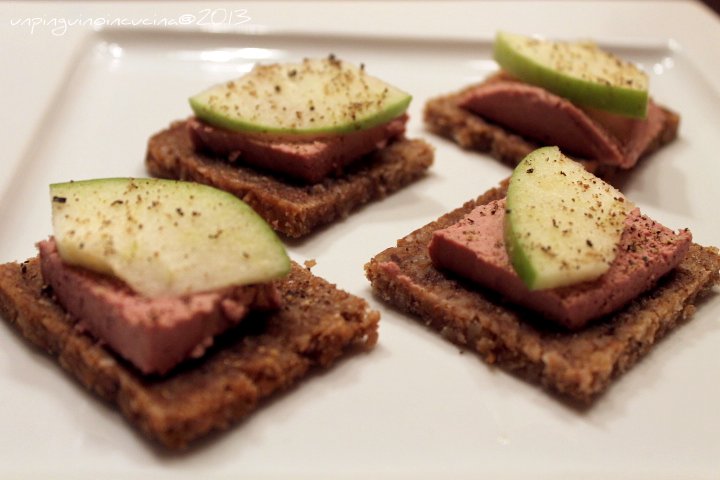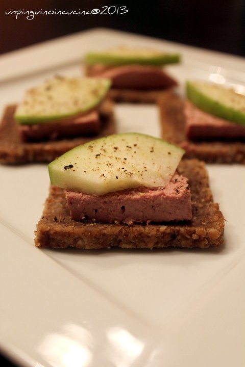 - Spalmare ogni fettina con un velo di miele, adagiarci sopra una fettina di paté e una di mela verde.