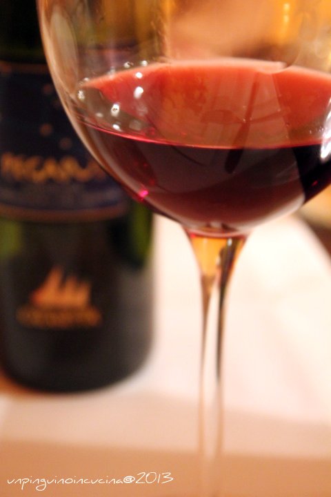 E come abbinamento, per restare in terra sarda, il mio gentil consorte ha stappato un vino rosso sardo che non conoscevo ma che con il suo sapore intenso si sposava molto bene con i funghi: un Pegasus, Carignano del Sulcis D.O.C.