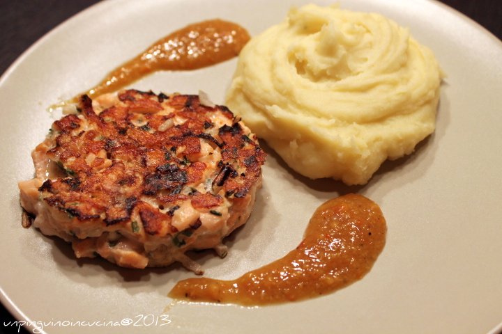 Ma passiamo alla ricetta di oggi: un delicato burger di pesce che ho accompagnato con una mostardina di agrumi e balsamico per un delizioso contrasto. Come contorno, un purè di patate, per non essere troppo invadente. Ovviamente, la mostardina vuole essere solo un consiglio un po’ diverso dal solito. Potete gustare i fishburger anche al naturale. Magari in un panino con qualche foglia di spinacino e due pomodorini secchi sott’olio… Cavoli, questa me la sono inventata sul momento, ma me la sto già pregustando!