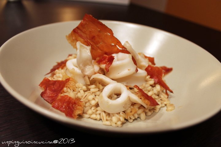 Orzotto con calamari e speck croccante