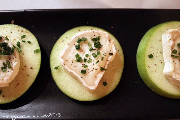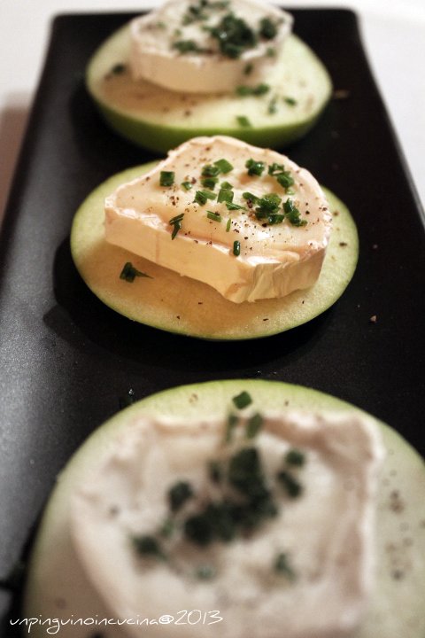 2. Posizionare una fetta di chèvre su ogni fetta di mela.