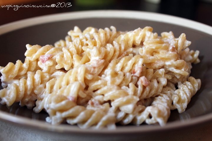 2. Nel frattempo, rosolare la pancetta in una padella antiaderente senza aggiunta di grassi. Spegnere dopo 3-4 minuti. Unire la ricotta e infine la pasta scolata. Se dovesse risultare un po' asciutto, aggiungere anche un po' di acqua di cottura della pasta.