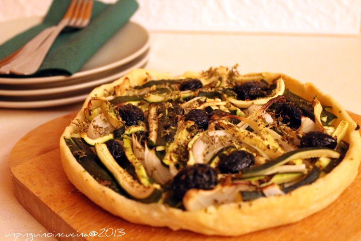 Dopo la recente esperienza del black out che mi ha mandato in tilt il congelatore mentre io ero fuori città, ho deciso che per le vacanze estive voglio partire in tranquillità, ovvero con il contenuto del freezer ridotto al minimo indispensabile. E pazienza per le scorte per il rientro (sono sempre troppo previdente!), faremo la gioia di tutti i take away del quartiere!E così, l’altro giorno ho fatto una prima perlustrazione e ho rinvenuto una palletta di pasta brisée e un pezzetto di feta (eh, già, il mio è un vizietto, surgelo di tutto!)…un’occhiata ad un ritaglio di Cucina Moderna su una sfogliata che aveva attirato la mia attenzione, qualche modifica al volo per usare ciò che avevo in casa e via, in forno, alzando un attimino l’aria condizionata per non far soffrire troppo i nani scatenati ;)