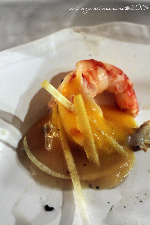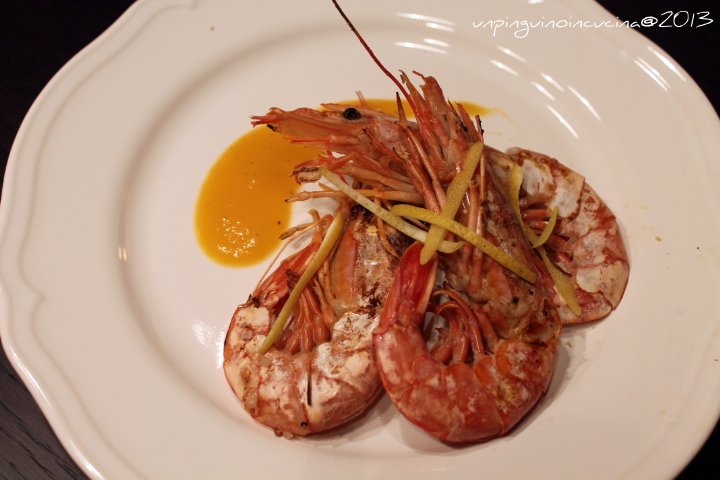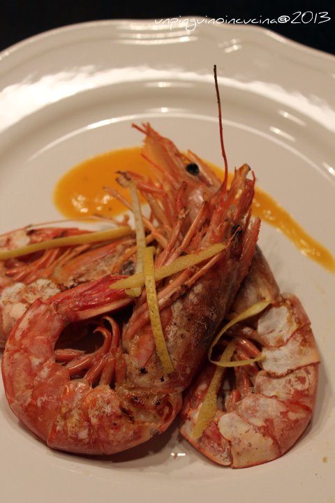 Gamberoni alla griglia con salsa alle pesche