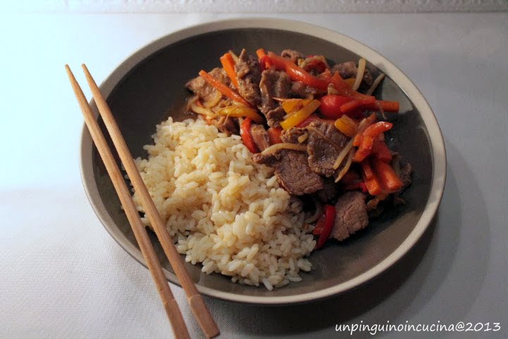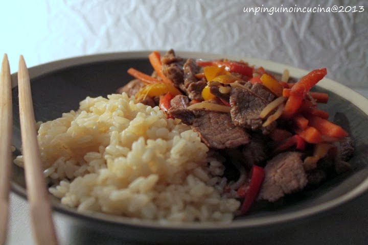 ritrovata tra le mani il volume “Oriente” della raccolta del Corriere della Sera. Sfoglia che ti ri-sfoglia mi sono imbattuta in questa ricetta che faceva al caso mio visto che avevo giusto giusto un filetto di maiale in