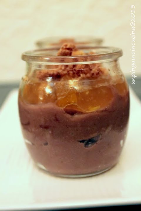 - Dopo il riposo in frigorifero il composto si presenterà molto compatto. Frullare con il frullatore a immersione e aggiungere il cacao. Distribuire la crema ottenuta nelle coppette o nei vasetti.