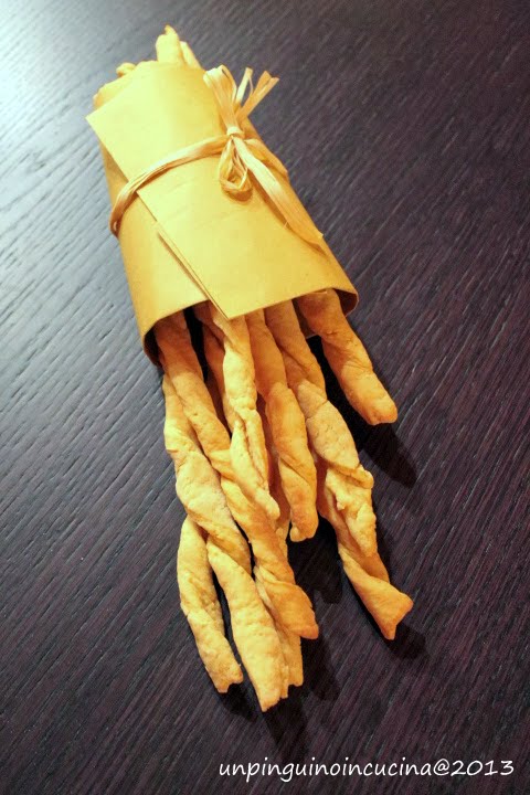 Meno male che oggi è venerdì. Non dovrei dirlo (perché poi succede qualcosa che ti fa cambiare programma) ma oggi spero proprio di riuscire ad uscire presto. Me ne vado a casa, faccio una sorpresa ai miei bimbi e passiamo un po’ di tempo insieme. Se poi, una volta che li ho messi a letto, mi dovesse venire un languorino mentre attendo il gentil consorte (moooolto probabile in questi giorni), sgranocchierò qualcuno dei miei grissini. Bellini, vero? Sono i miei primi! :)
