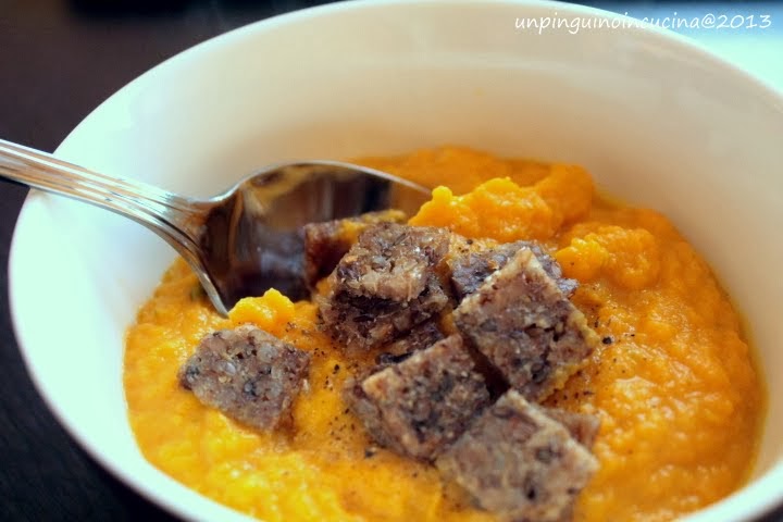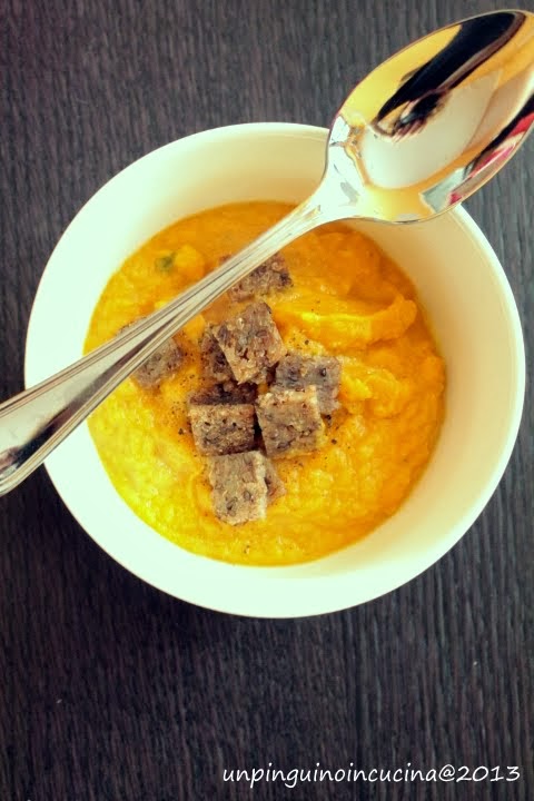 Crema di carote e latte di cocco con crostini di pane di segale