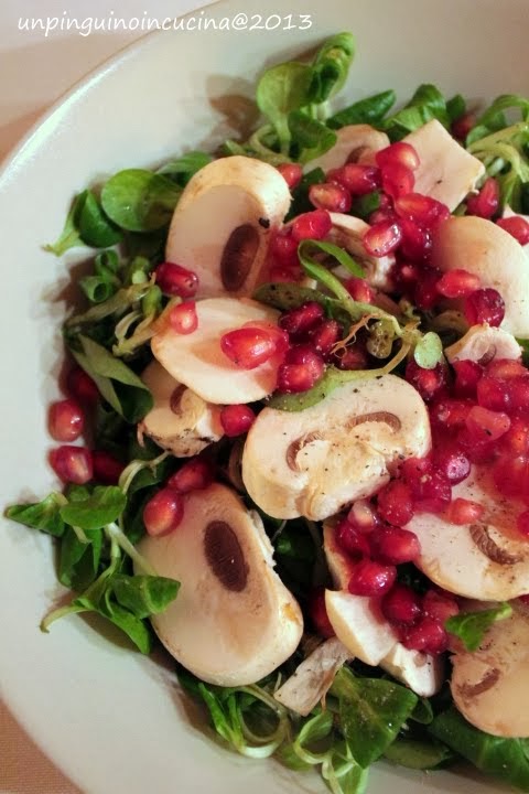 Dopo questa amarcord pre-natalizio, vi lascio una ricetta che rimane sempre in tema natalizio: una fresca insalatina adatta anche per la tavola delle feste visto che contiene il melograno, frutto tipicamente portafortuna.